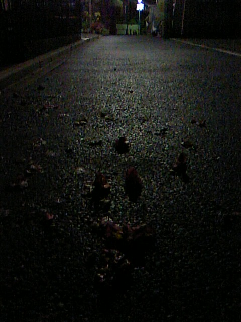 夜、赤い椿、落ちていた。