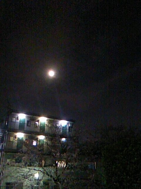 満月の次の晩の月は、少し欠けていて、もや越しに光っていました。